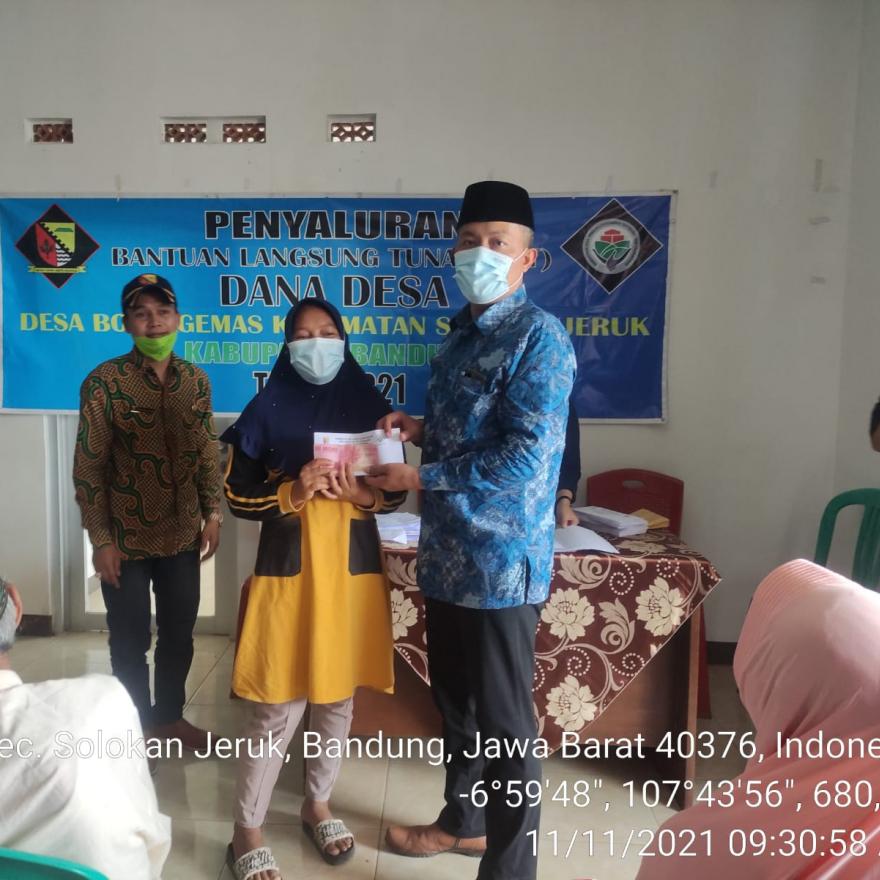 PENYERAHAN BANTUAN LANGSUNG TUNAI (BLT) DANA DESA TAHAP 3 BULAN KE 11 TAHUN ANGGARAN 2021 OLEH KEPALA DESA BOJONGEMAS. H. DEDE RUKMA NURDIN,S,Ag. PADA HARI KAMIS TANGGAL 11 NOVEMBER 2021