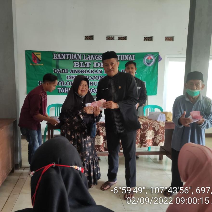PADA HARI JUM'AT TANGGAL 02 SEPTEMBER TAHUN 2022 KEPALA DESA BOJONGEMAS (H. DEDE RUKMA NURDIN,S.Ag) TELAH MENYALURAN BANTUAN LANGSUNG TUNAI DESA (BLT DESA) TAHAP KE 3 BULAN KE 7,8 dan 9 ANGGARAN DARI DANA DESA TAHAP III TAHUN 2022
